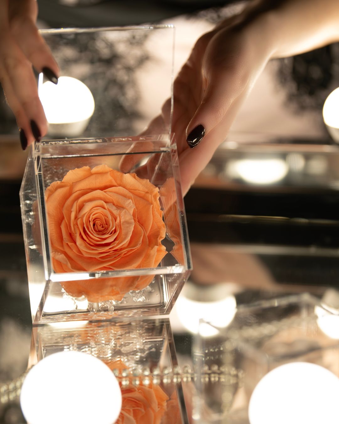 3. I Flowercube non devono essere puliti con soluzioni a base alcolica, ma semplicemente con un panno imbevuto di acqua. Per non compromettere le caratteristiche del Flowercube, il contenuto non deve essere nebulizzato con alcuna sostanza.